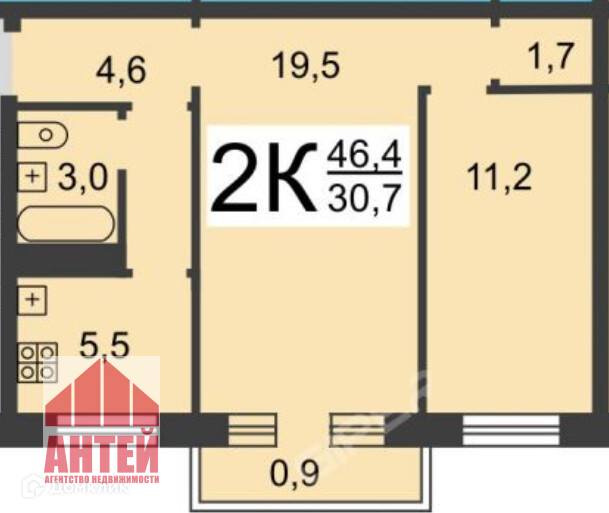 Общая площадь 46.4 м2