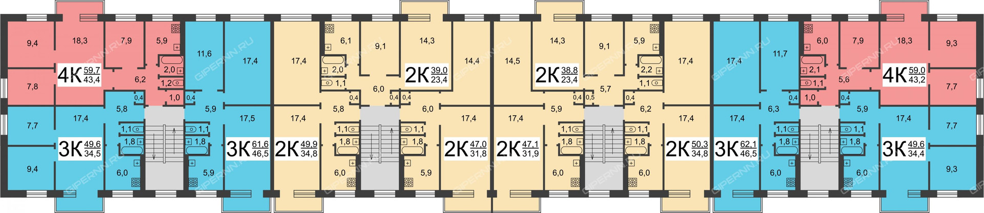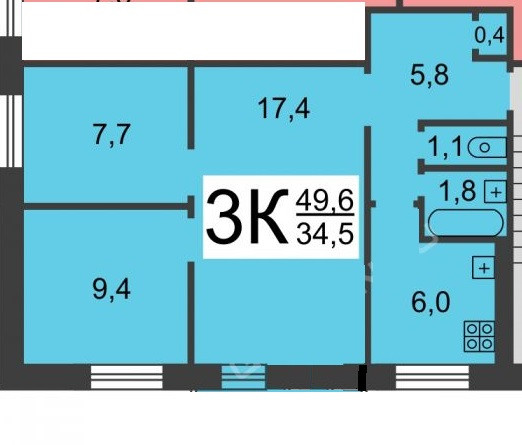 Общая площадь 49.6 м2