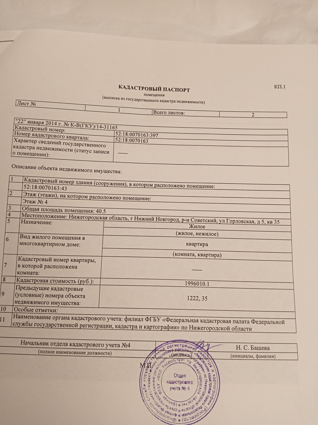 2-комнатная квартира, 40.5 м2, этаж 4 / 4, на продажу в Нижнем Новгороде, Горловская улица, 5