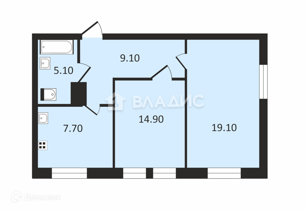 Общая площадь 56.7 м2