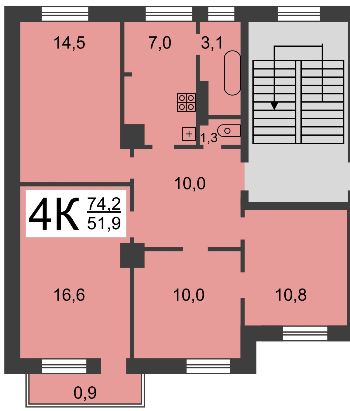 Общая площадь 74.2 м2