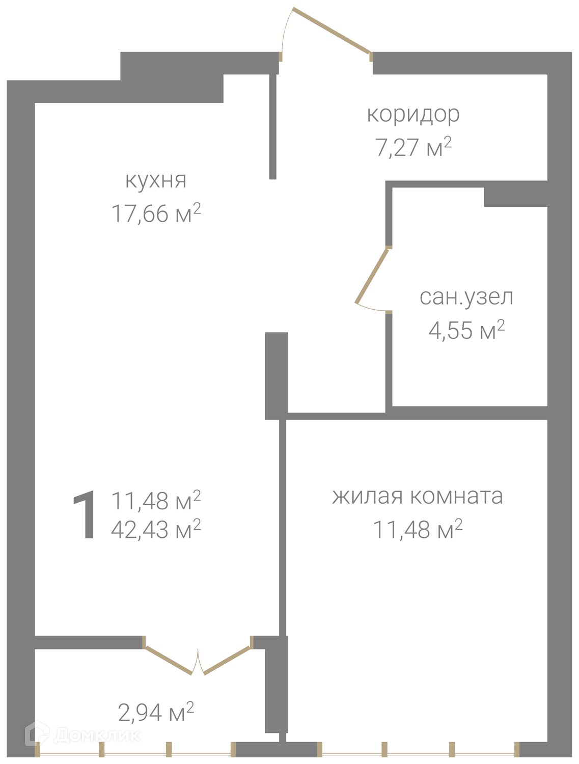 Общая площадь 42.43 м2