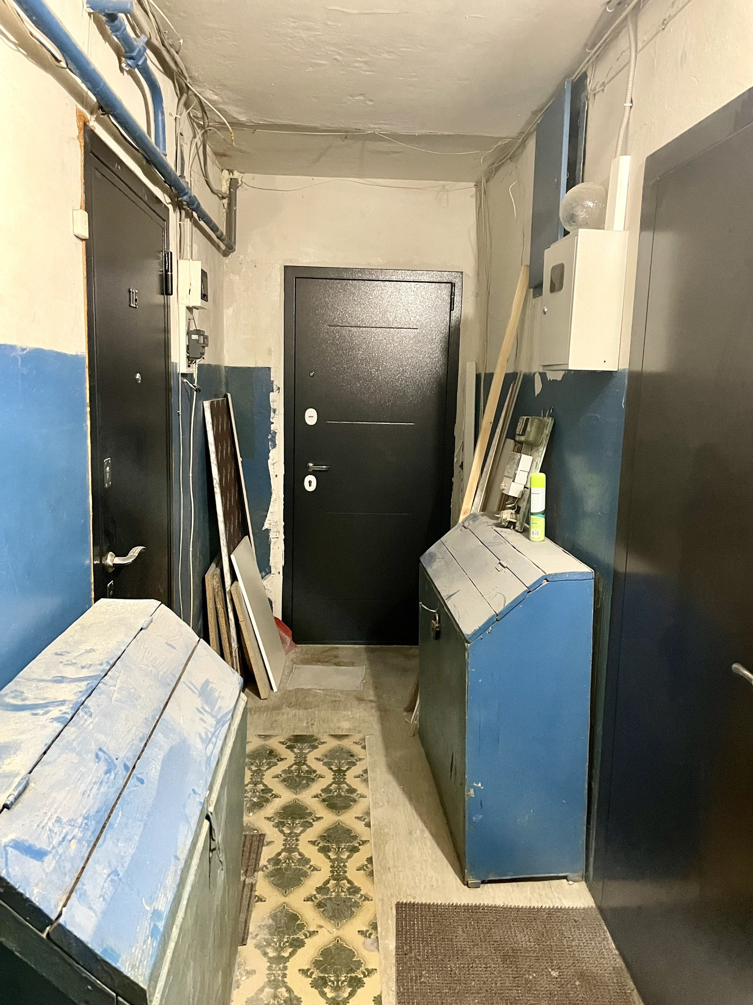 Сделана стяжка полов, замена всей проводки (медь, ГОСТ), всех труб, и радиаторов отопления.