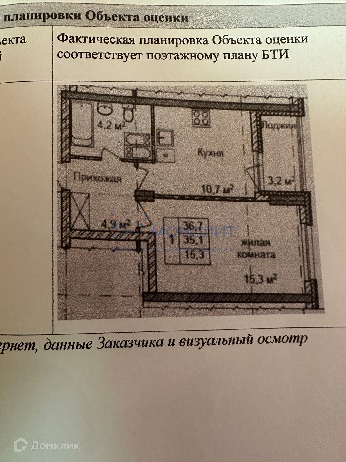 Общая площадь 36.7 м2