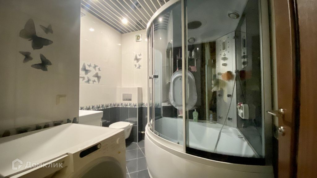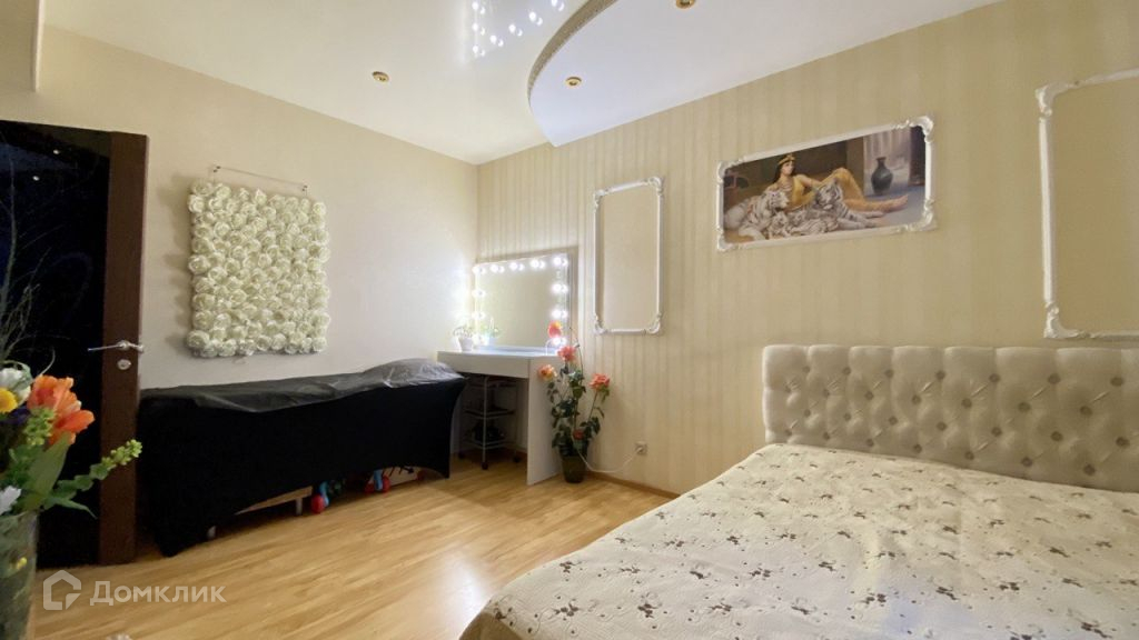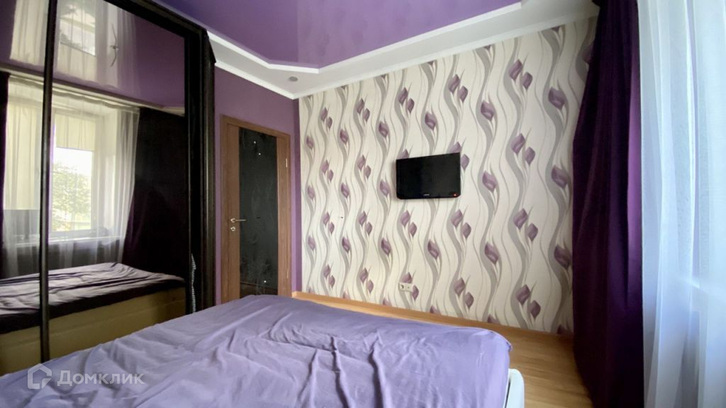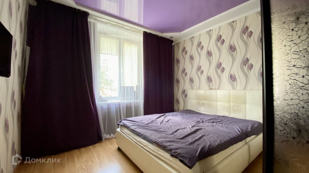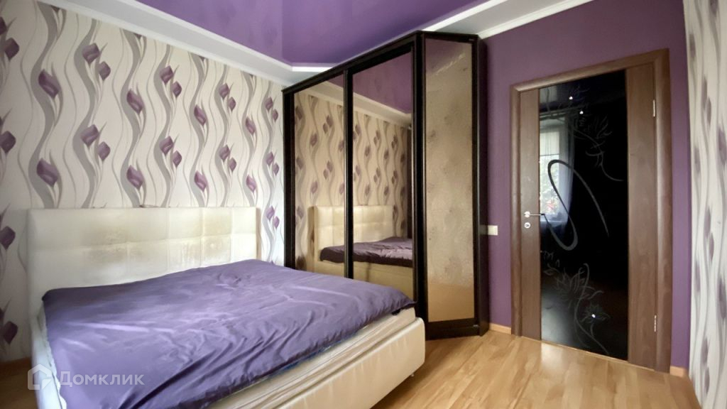 Спальная комната площадью 13,5 кв.м. Ремонт выполнен в светло фиолетовых тонах, напольное покрытие ламинат, комбинированный бело-фиолетовый потолок, стены оклеены обоями.Объединенный санузел площадью 4,9 кв.м отделан плиткой, установлена душевая кабина.Просторная прихожая 13,5 кв.м. Напольное покрытие керамическая плитка, стены оклеены обоями, установлен встроенный шкаф-купе.