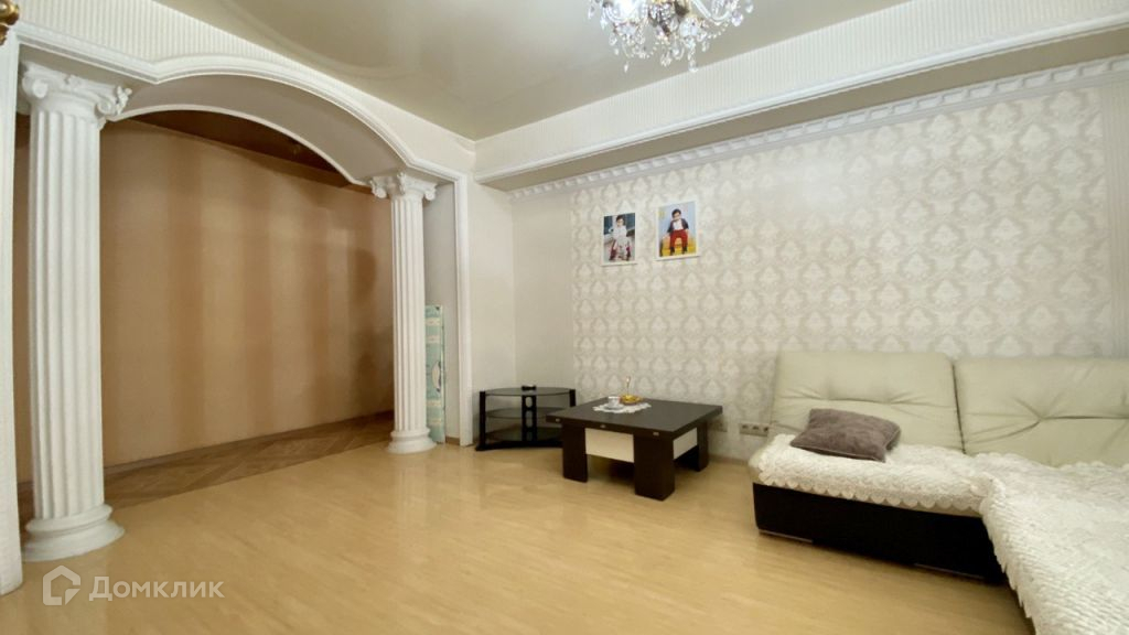 КВАРТИРА: Квартира расположена на 4 этаже 5 этажного кирпичного дома. Общая площадь 74 кв.м. Три просторные комнаты, большая прихожая, функциональная кухня с выходом в гостиную. Высокие потолки, от пола до натяжного потолка 2,8 м.