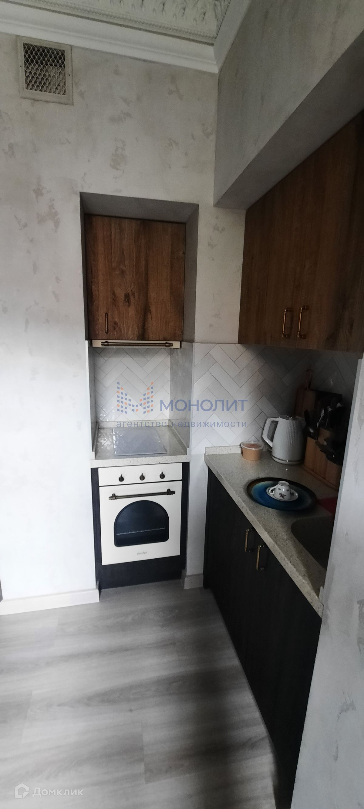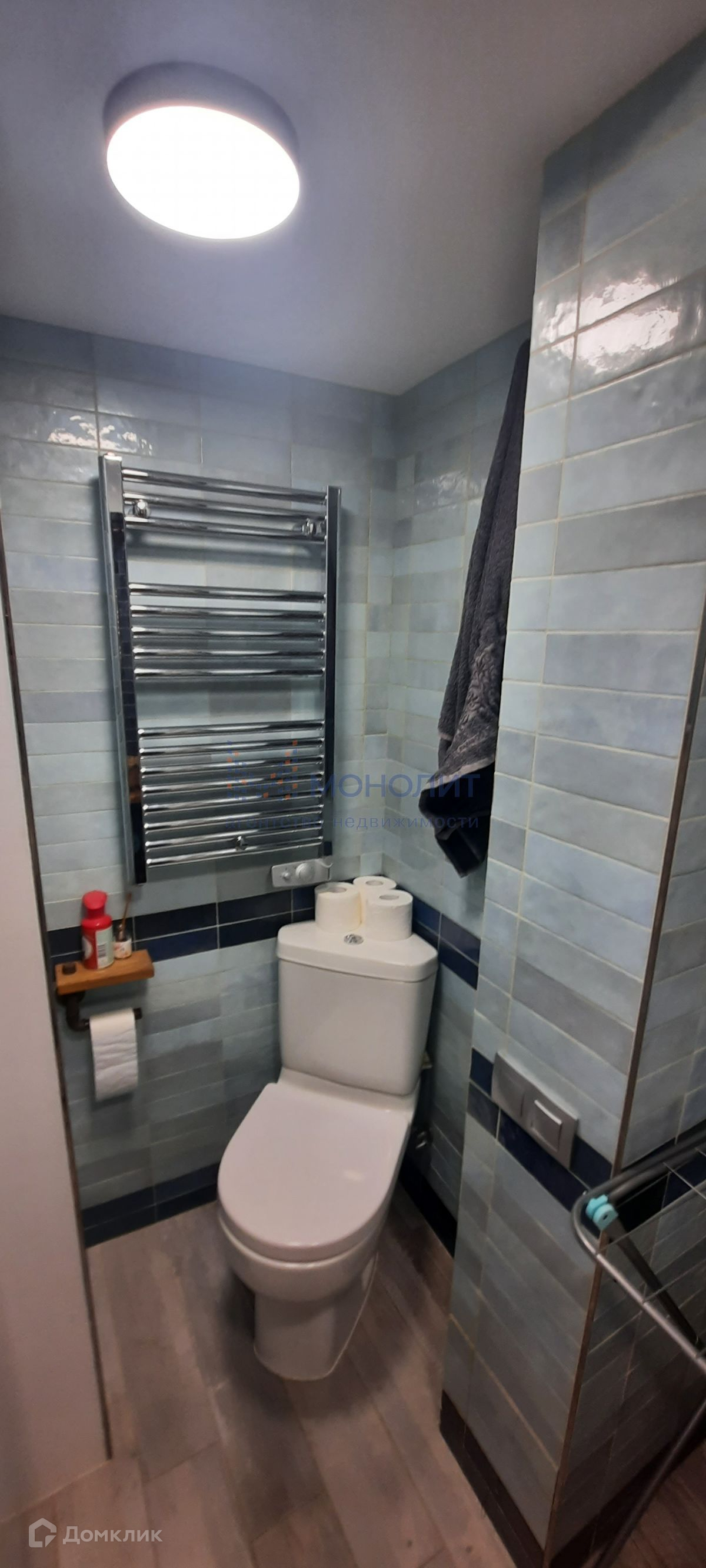 Квартира очень теплая благодаря центральному отоплению, а также обеспечена бойлером для нагрева воды. В кухне есть электрическая варочная панель, духовка, вытяжка, встраиваемый холодильник и микроволновка. В санузле установлены душ, раковина, унитаз, полотенцесушитель и стиральная машина.