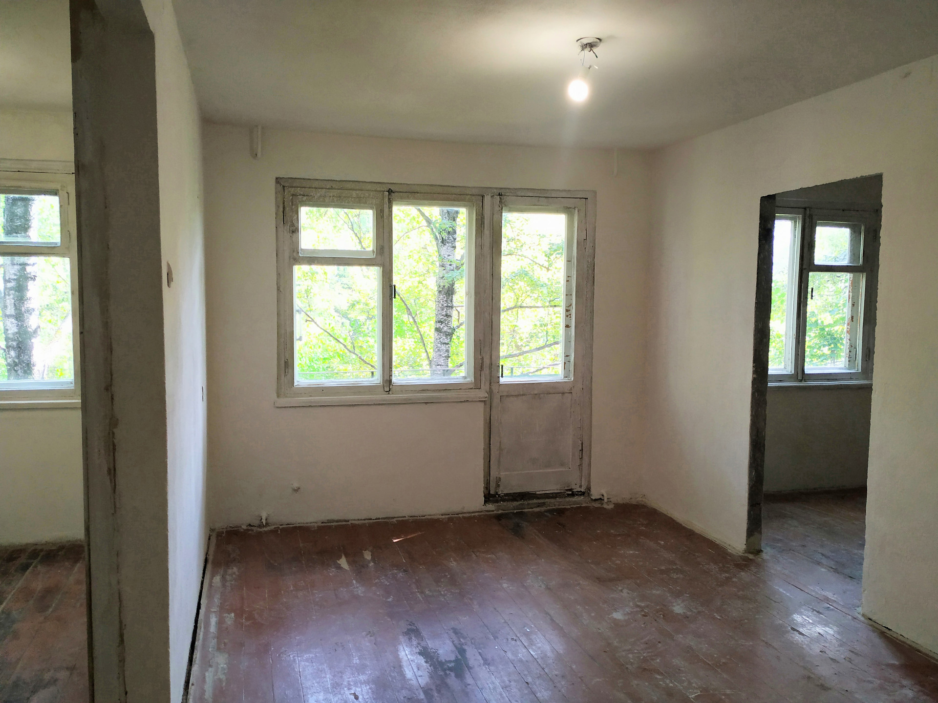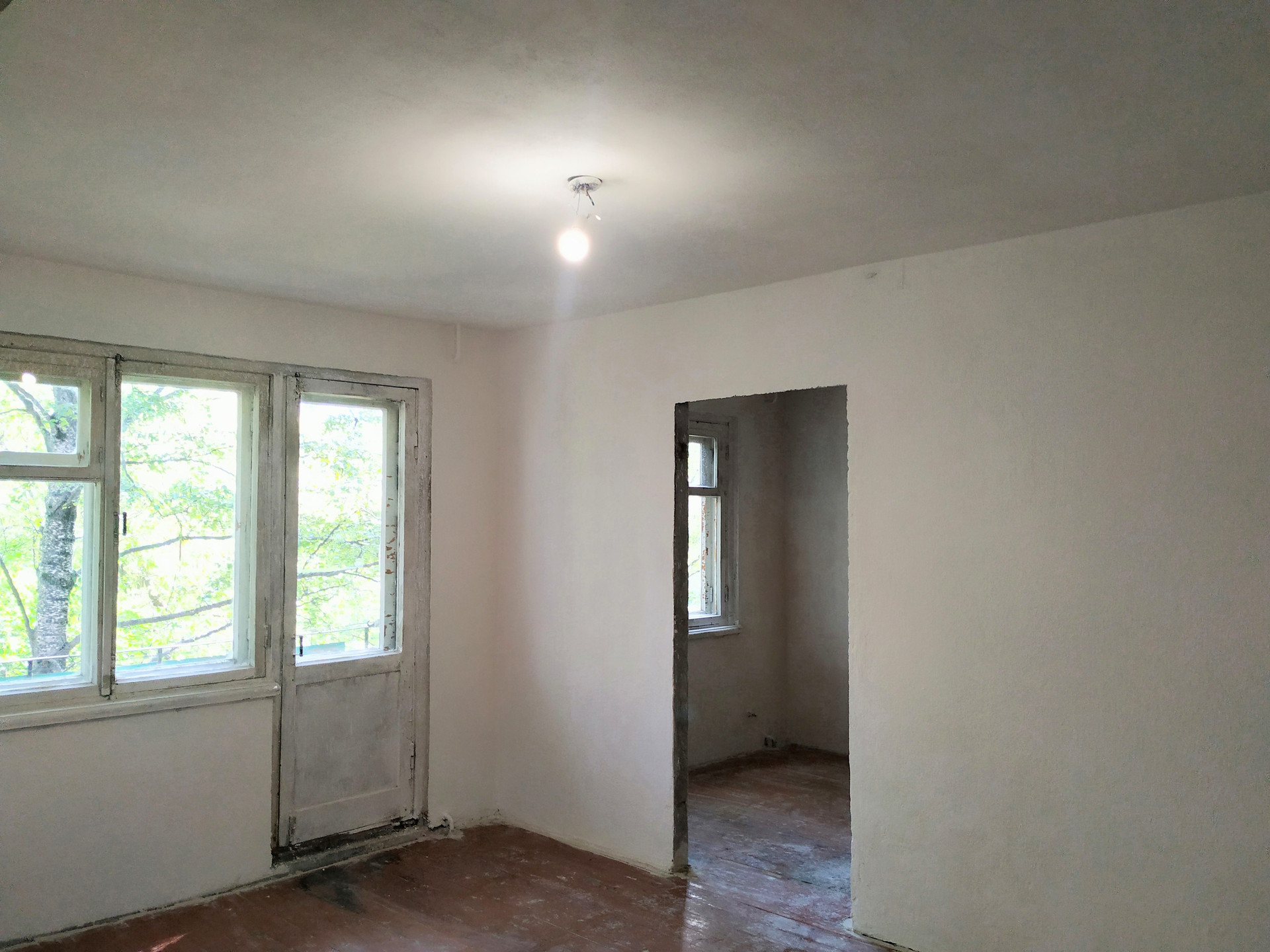 Квартира не угловая, без колонки, начат ремонт - обои сняты, стены зашпаклеваны, загрунтованы.