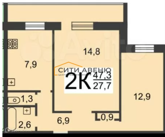 Общая площадь 47.3 м2
