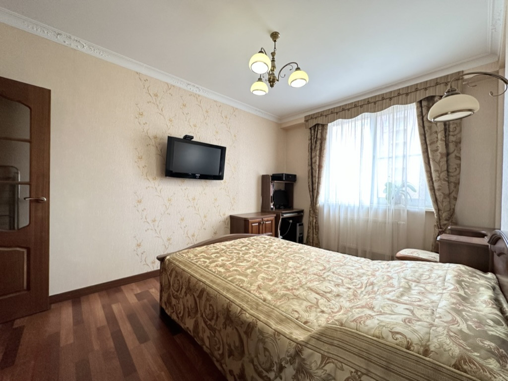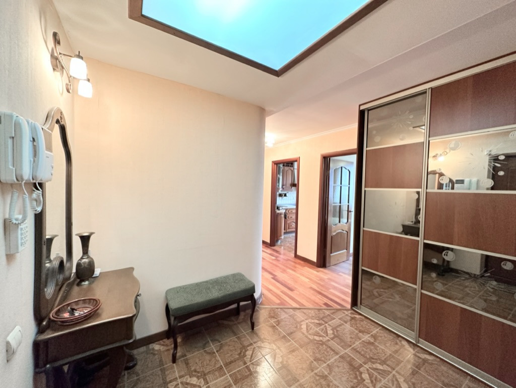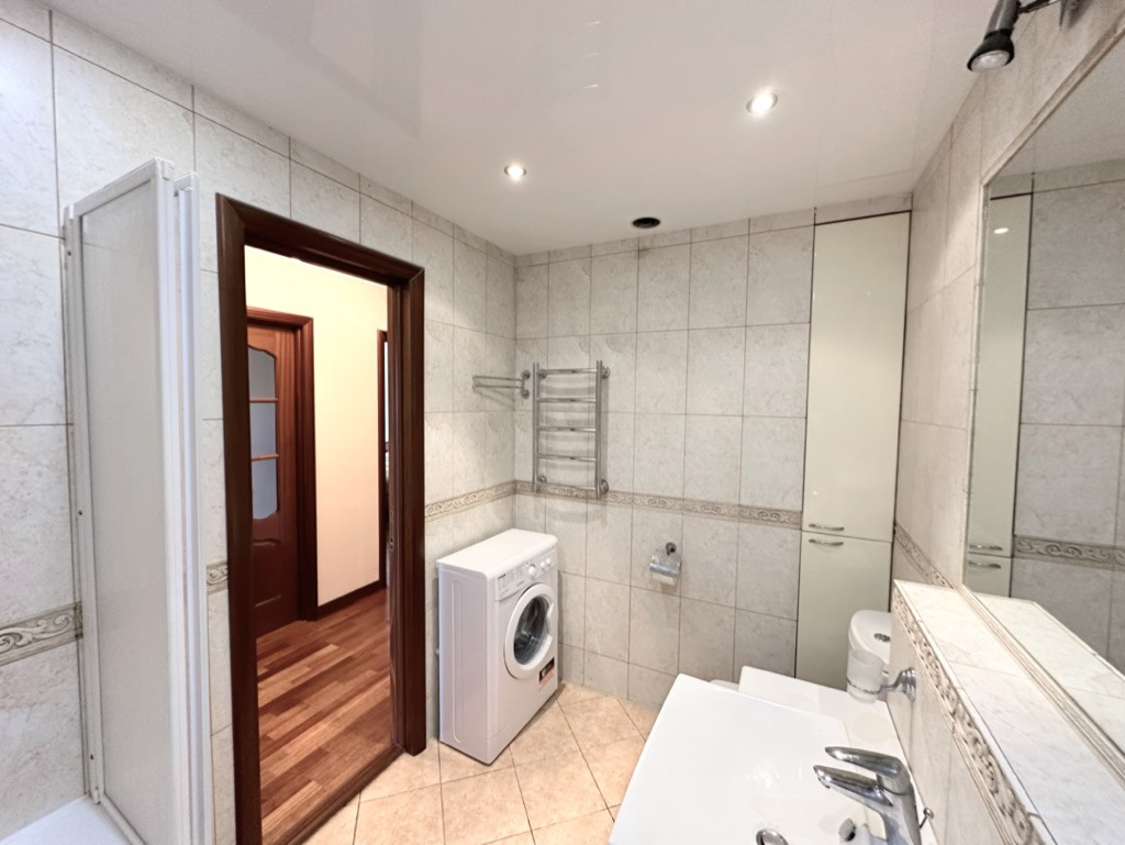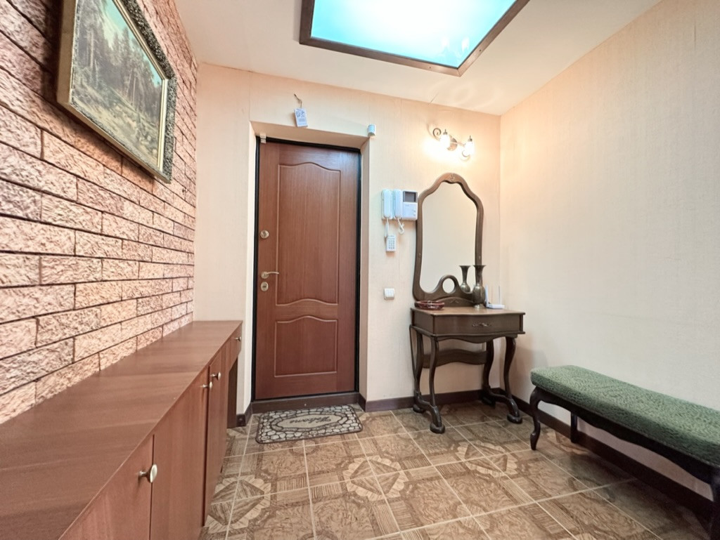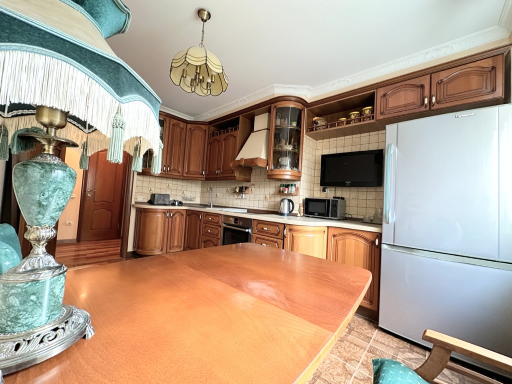 Идеально ровные стены, на полу паркетная доска, в санузлах установлена импортная сантехника и дорогая плитка, качественные межкомнатные двери из массива дерева, входная антивзломная, стальная Guardian, кухня из массива (итальянские фасады), столешница жидкий камень, видеодомофон, сигнализация, брендовая бытовая техника и т.д.