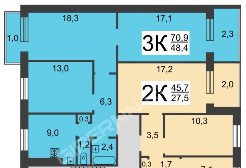 Общая площадь 70 м2