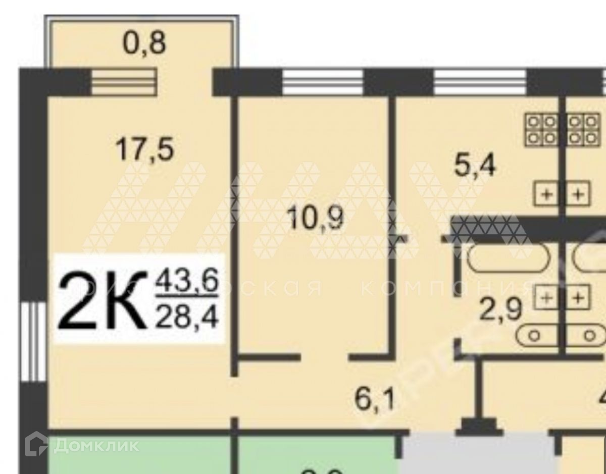 Общая площадь 42.8 м2