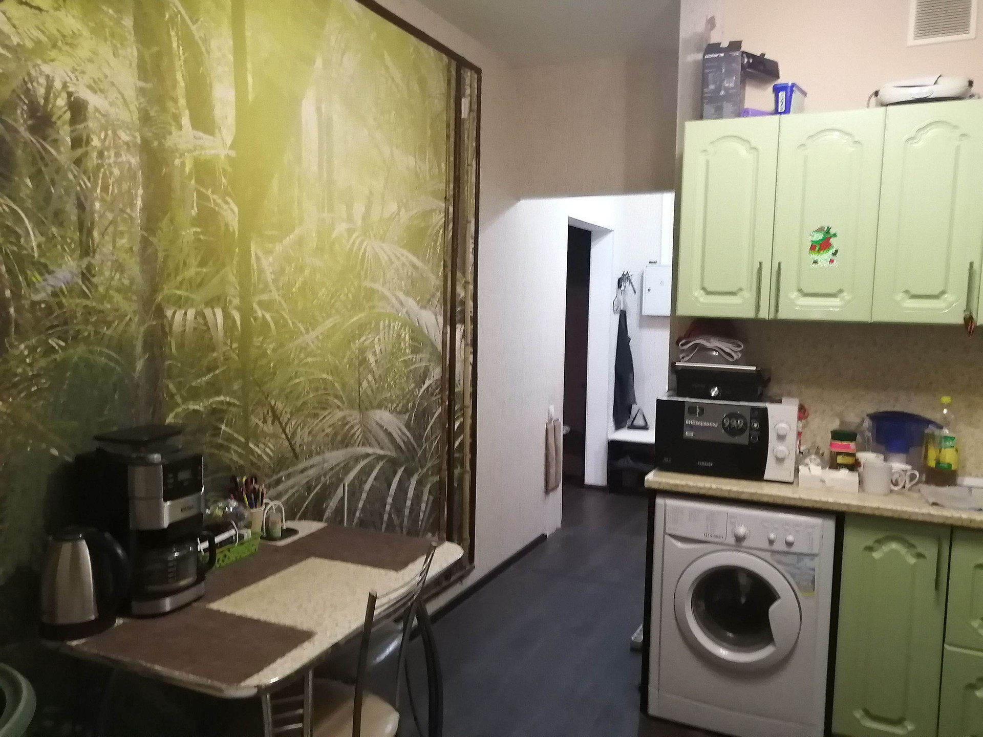 Вся мебель остаётся в квартире, кухонный гарнитур и гардеробная были сделаны на заказ.