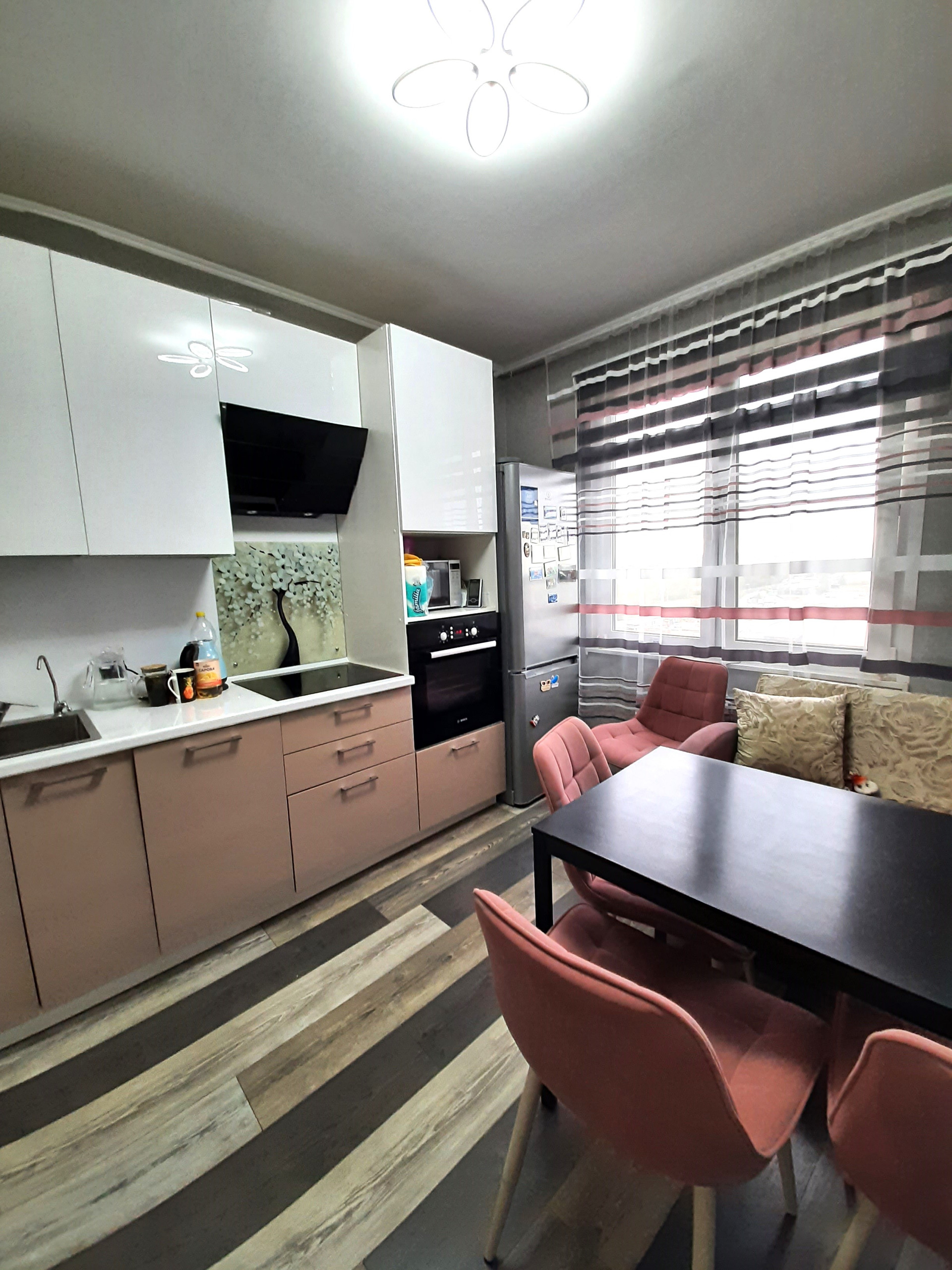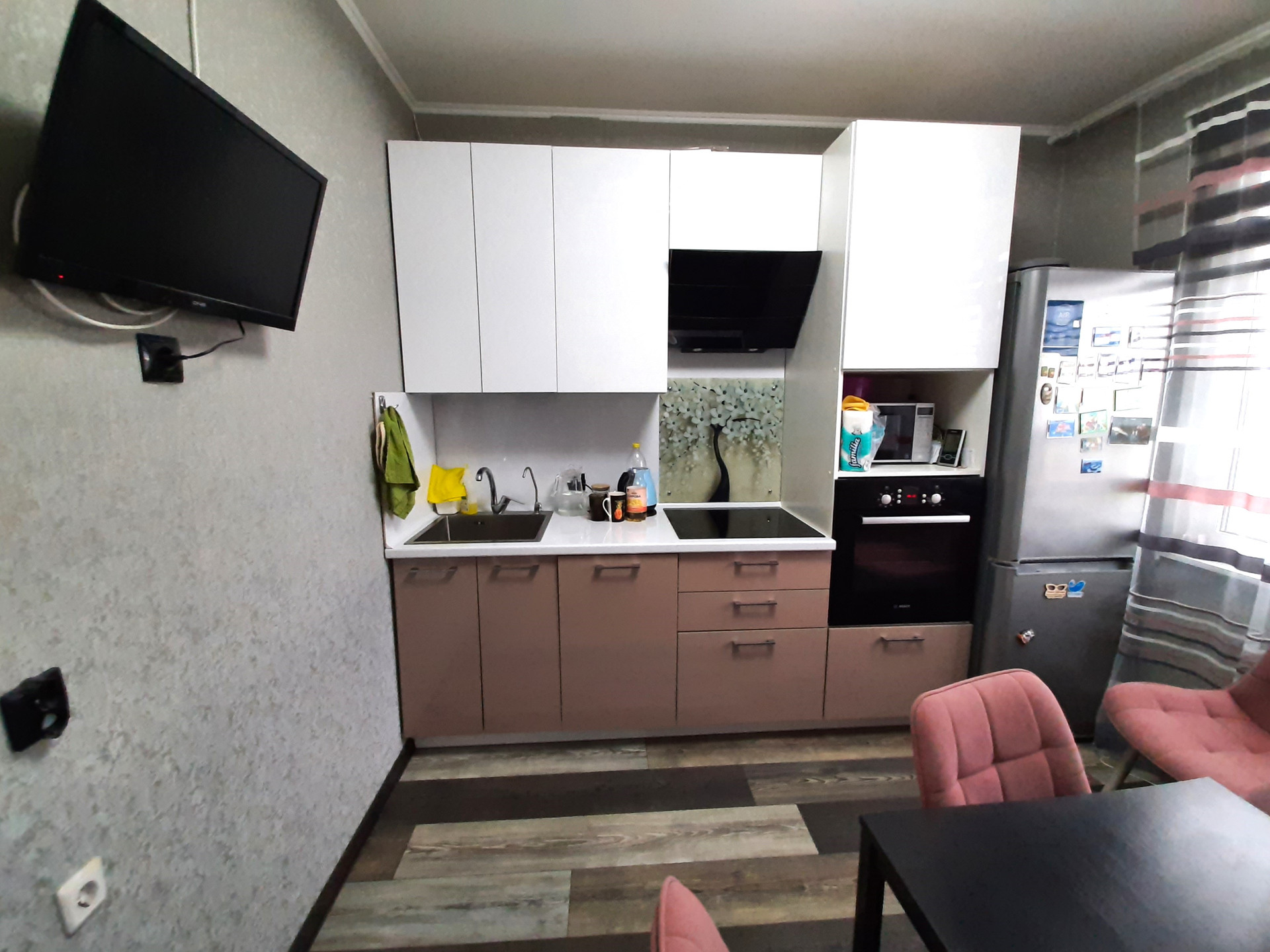 Квартира в хорошем состоянии, можно заехать и жить. Кухонный гарнитур остается в подарок.