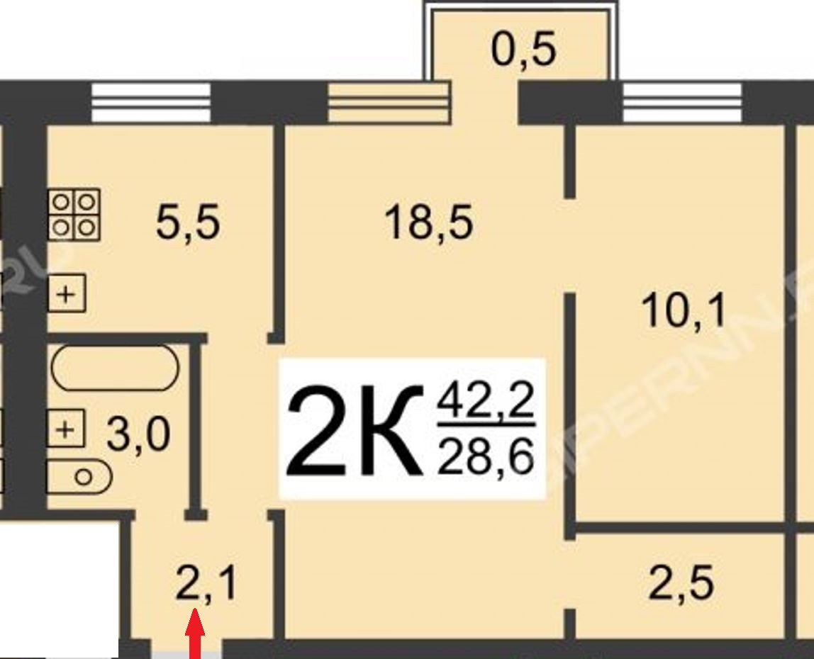 Общая площадь 43 м2
