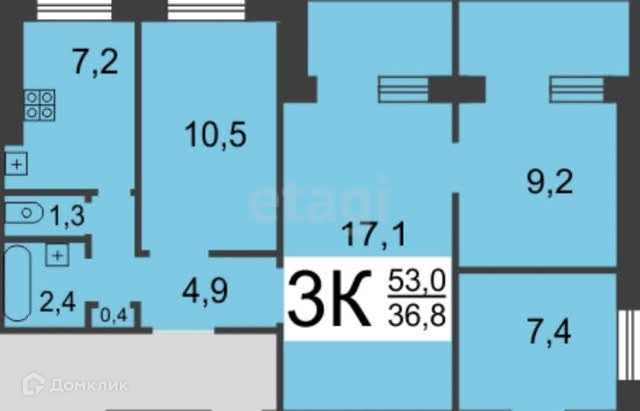 Продаю 3-х комнатную квартиру с капитальным ремонтом, в 9-ти этажном доме на 9-ом этаже (сверху тех.этаж). Площадь 53 кв.м.