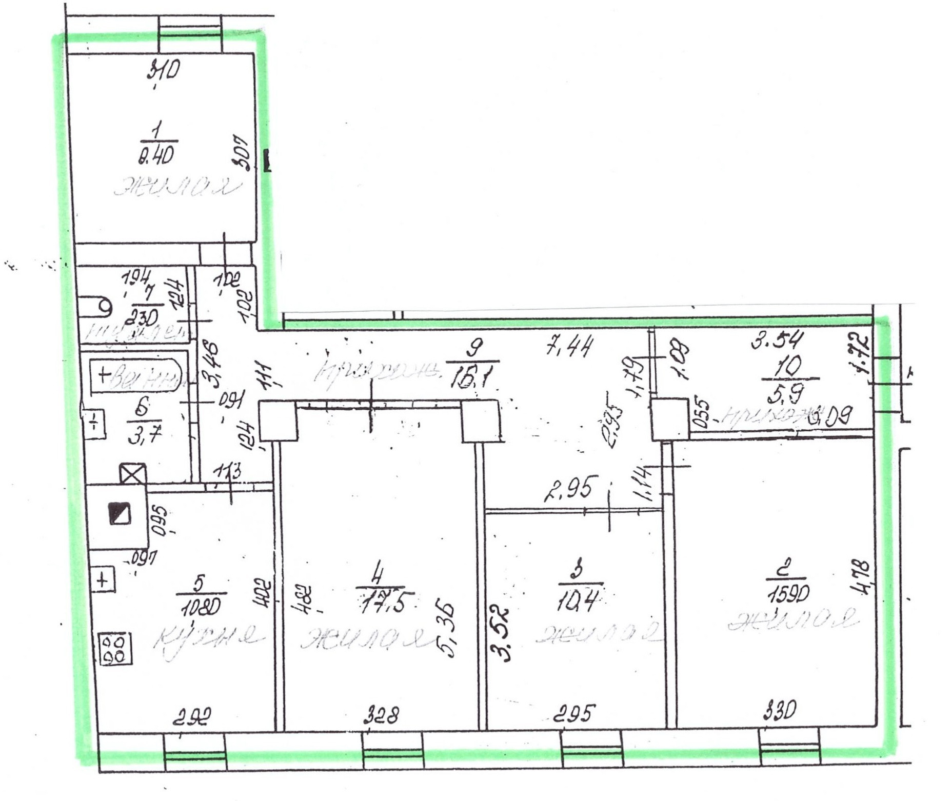 Высота потолков 3.1 м