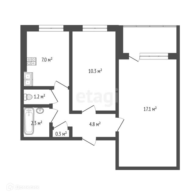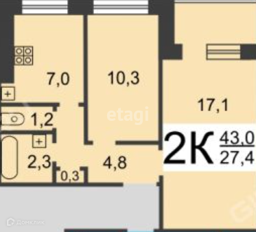 Общая площадь 43 м2
