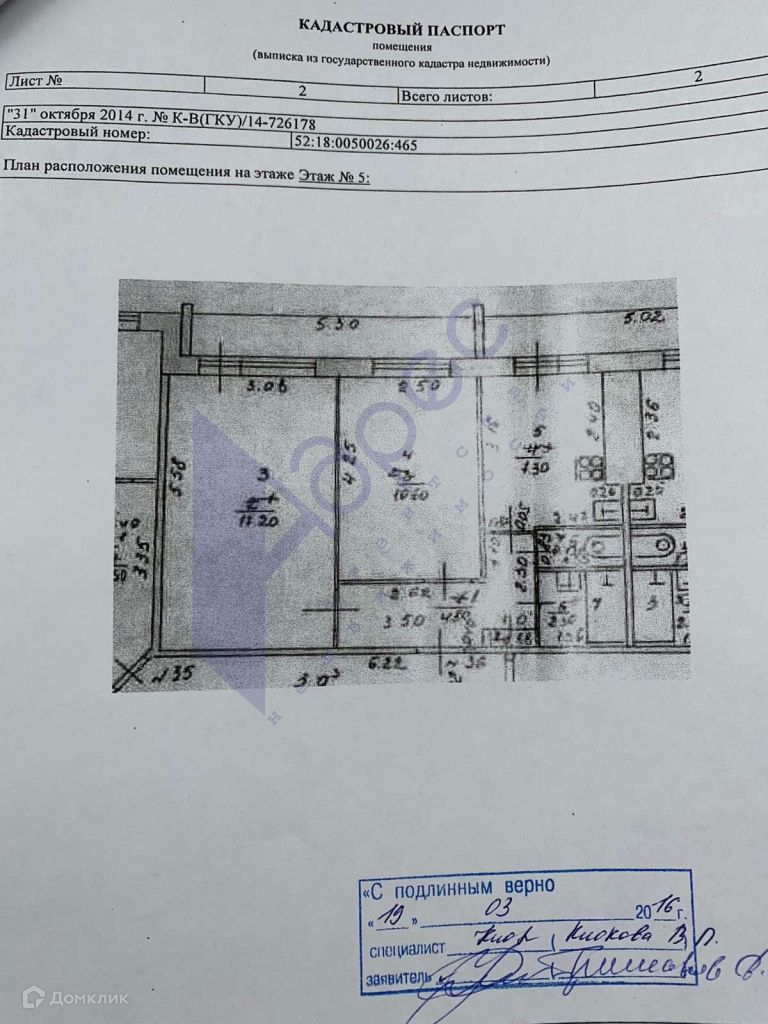 2-комнатная квартира, 43 м2, этаж 5 / 9, на продажу в Нижнем Новгороде, улица Даргомыжского, 3