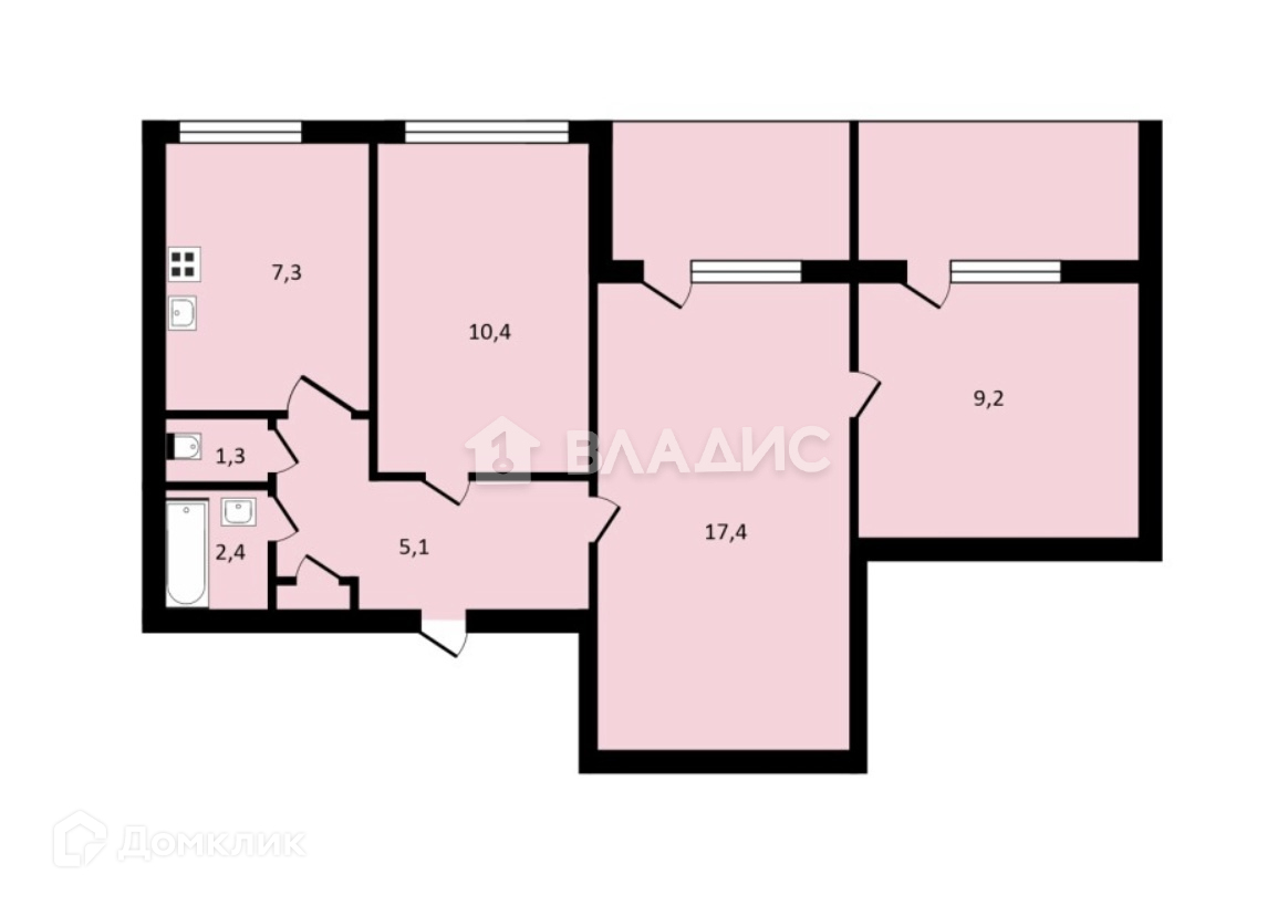 Общая площадь 63 м2