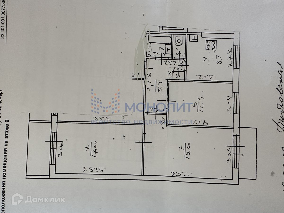 3-комнатная квартира, 66.4 м2, этаж 9 / 9, на продажу в Нижнем Новгороде, улица Строкина, 3А