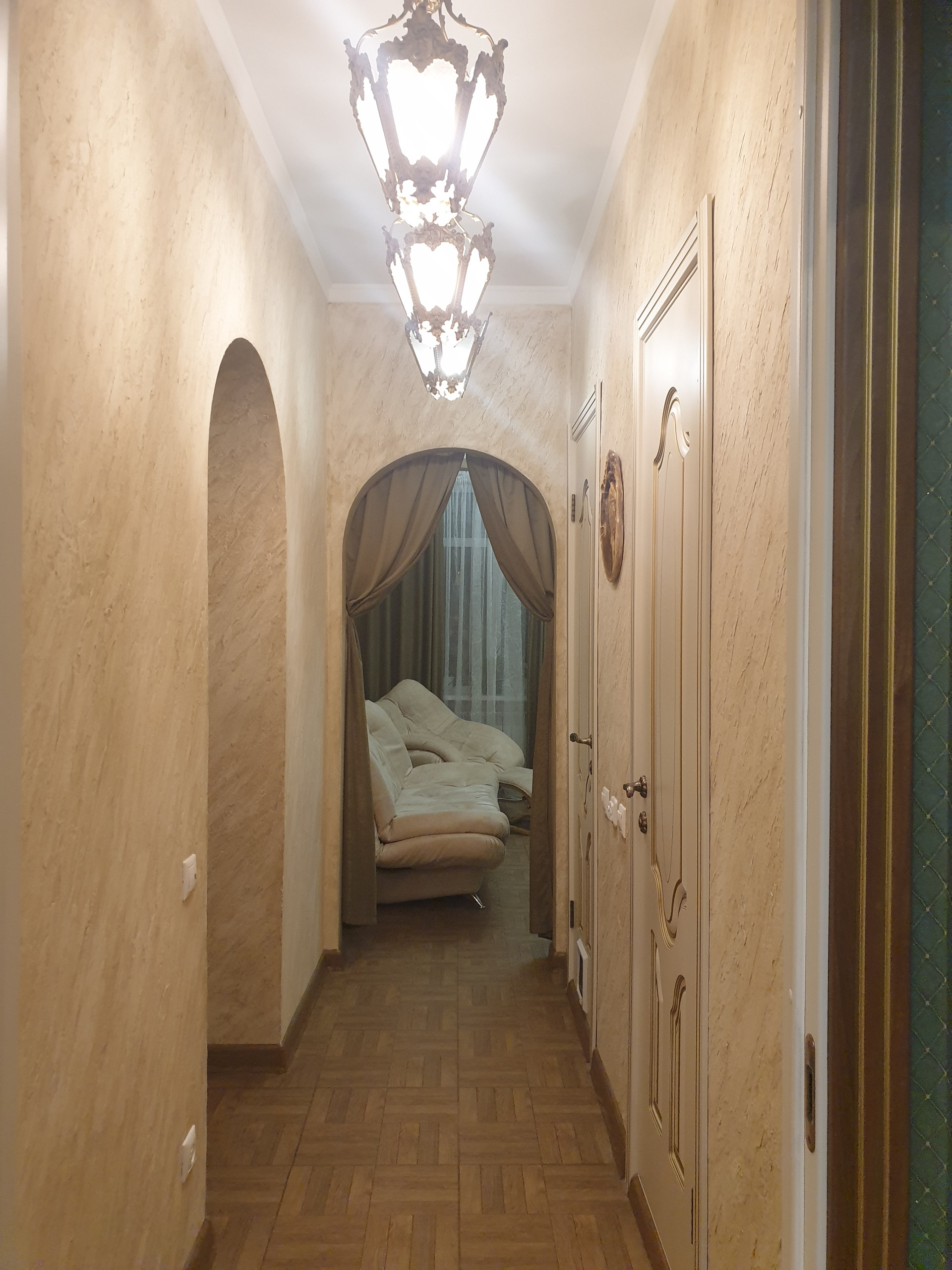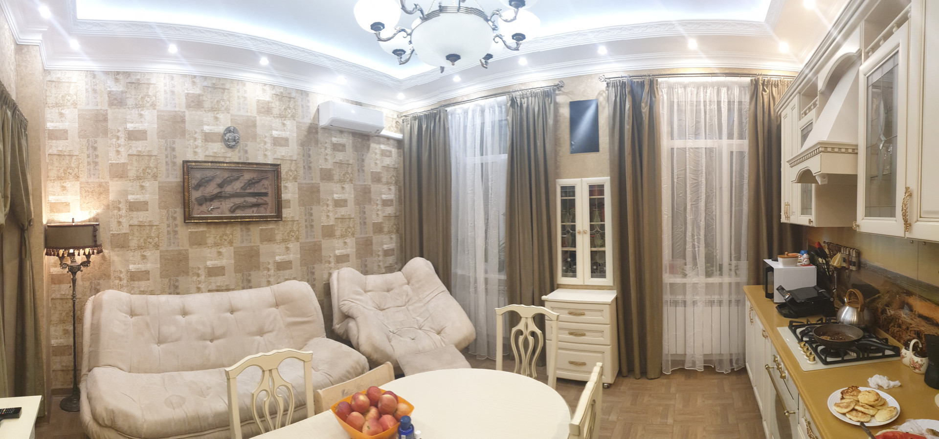 Шикарная сталинка с шикарным ремонтом. Два раздельных санузла. Ванная с гидромассажем. Пол с подогревом. Отдельная большая душевая. Автоматическая вентиляция в душе, ванной, кухне, туалете. Все смесители с термостатом (Германия). Фильтры и счётчики на воду. Бойлер на 100 литров на случай отключения горячей воды. Трубы новые. Дорогая кухня из массива с немецкой техникой (газовая встроенная плита, духовка и посудомойка). Высокие нестандартные межкомнатные двери. Потолки 3,2 метра с глубинной подсветкой (что делает их ещё выше) и спотами. Два утепленных балкона. Три новых кондиционера (Митсубиши).