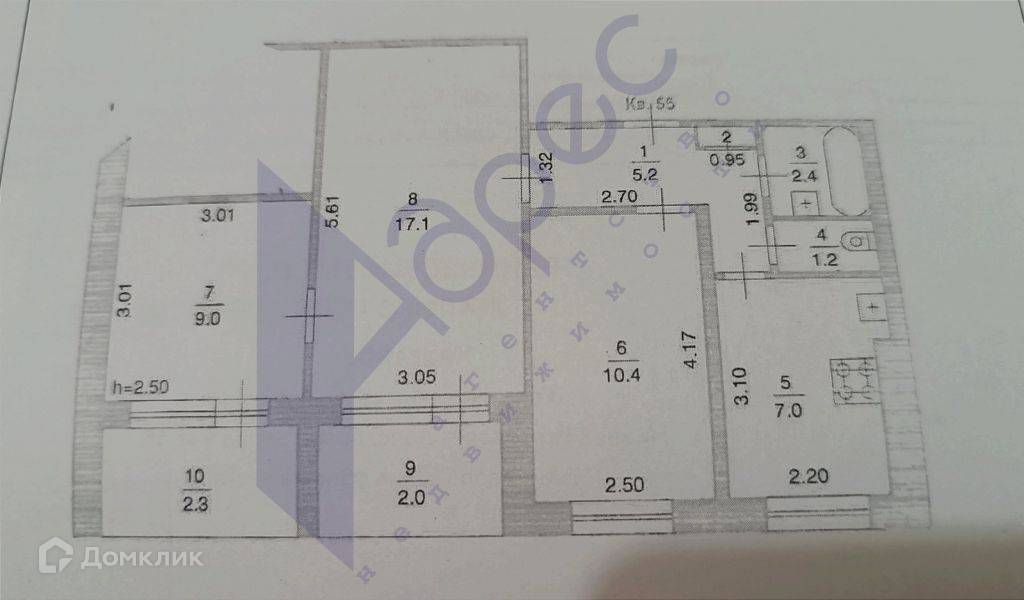 Общая площадь 52.6 м2