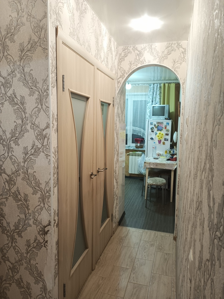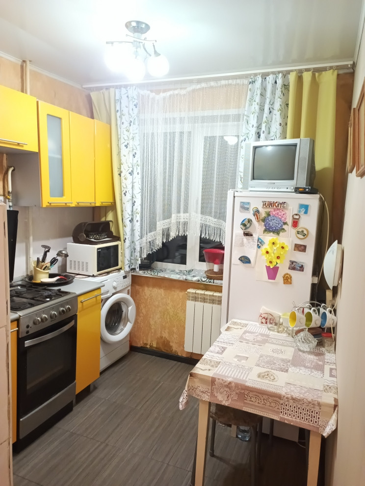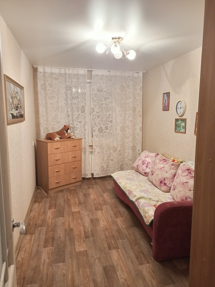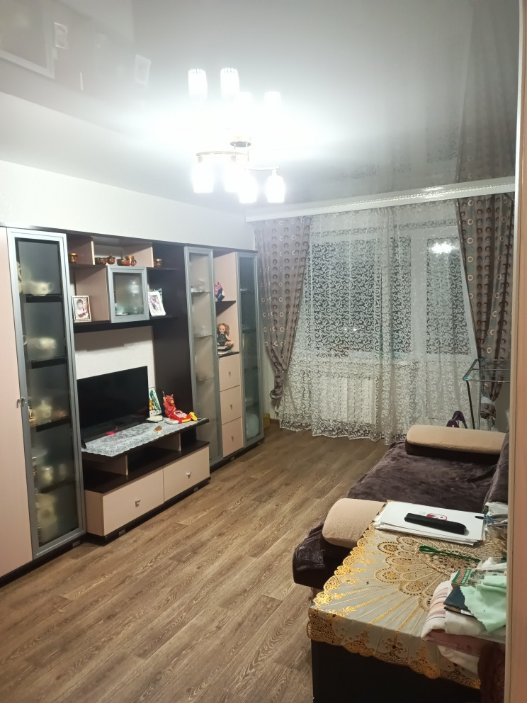 Отличная квартира, с изолированными комнатами, в хорошем состоянии. Окна пластиковые, радиаторы заменены, санузел в кафеле, натяжные потолки, на полу в прихожей и на кухне - керамогранит, в комнатах - износостойкий линолеум. Балкон после ремонта. Остается кухонный гарнитур, шкаф в прихожей.