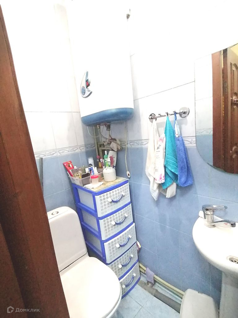 Санузел совмещён, новый унитаз, раковина и душ, стены и полы выложены плиткой, установлен бойлер на 80л.