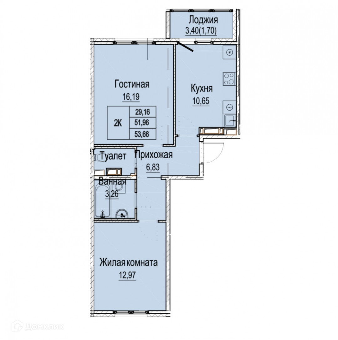 Общая площадь 53.7 м2