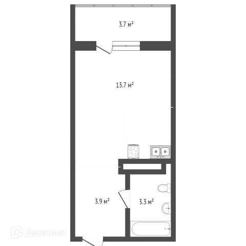 Общая площадь 22 м2