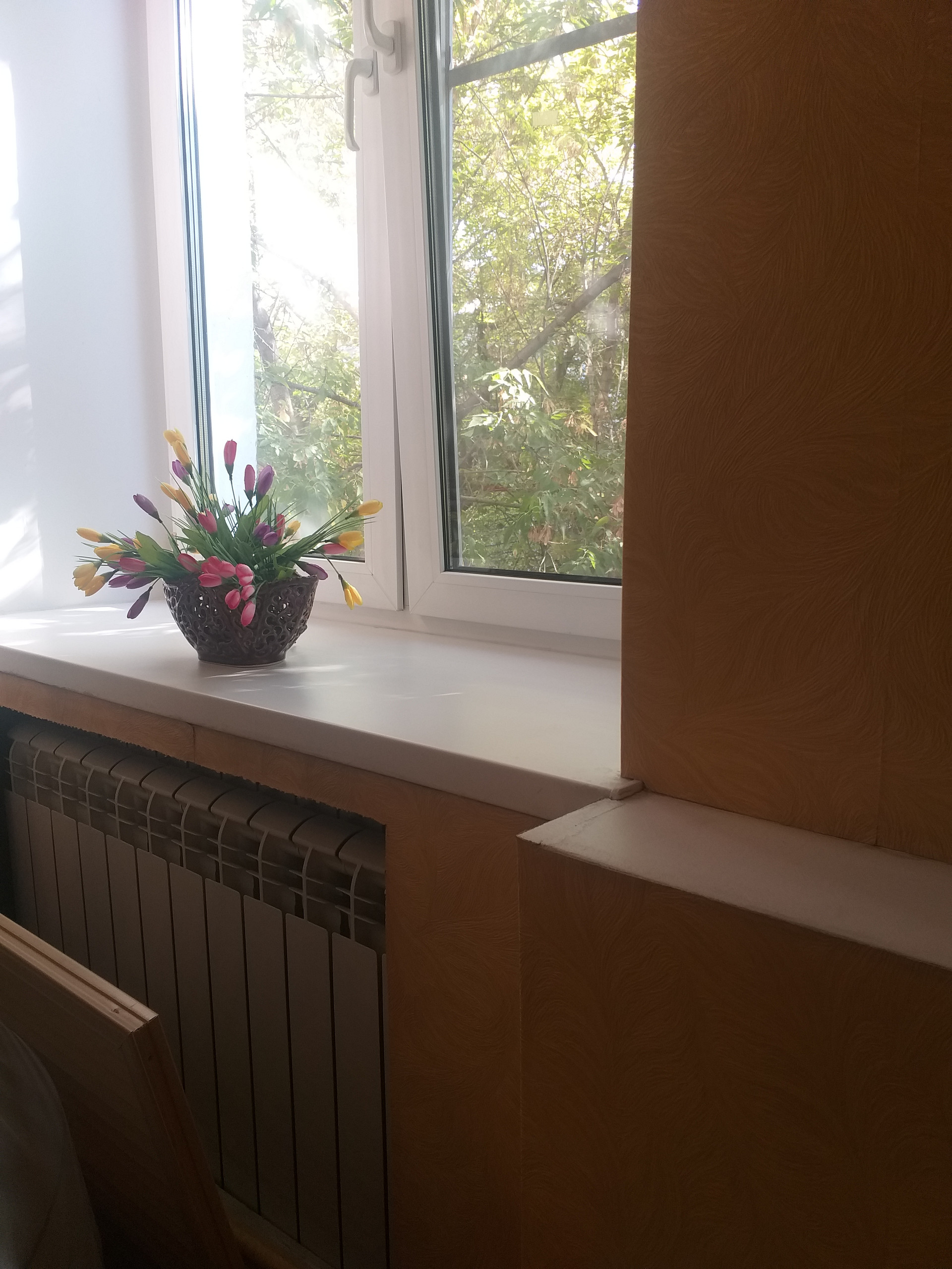 Светлые и большие окна с широкими подоконниками