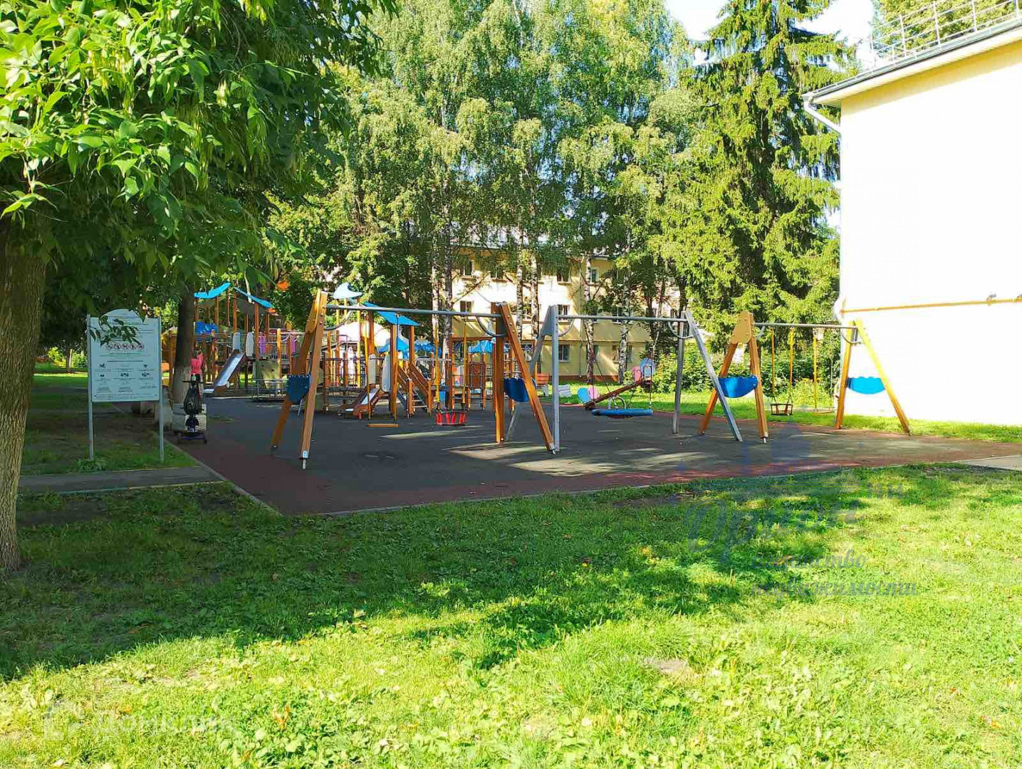 3) Большой двор с благоустроенной детской площадкой,лавочками для отдыха и дорожками для прогулок, площадка для воркаута, творческий клуб для детей и подростков