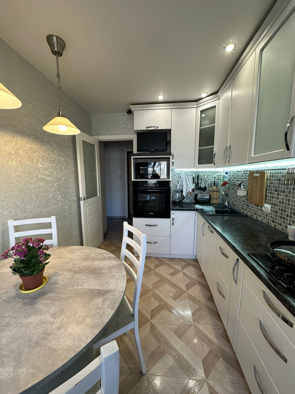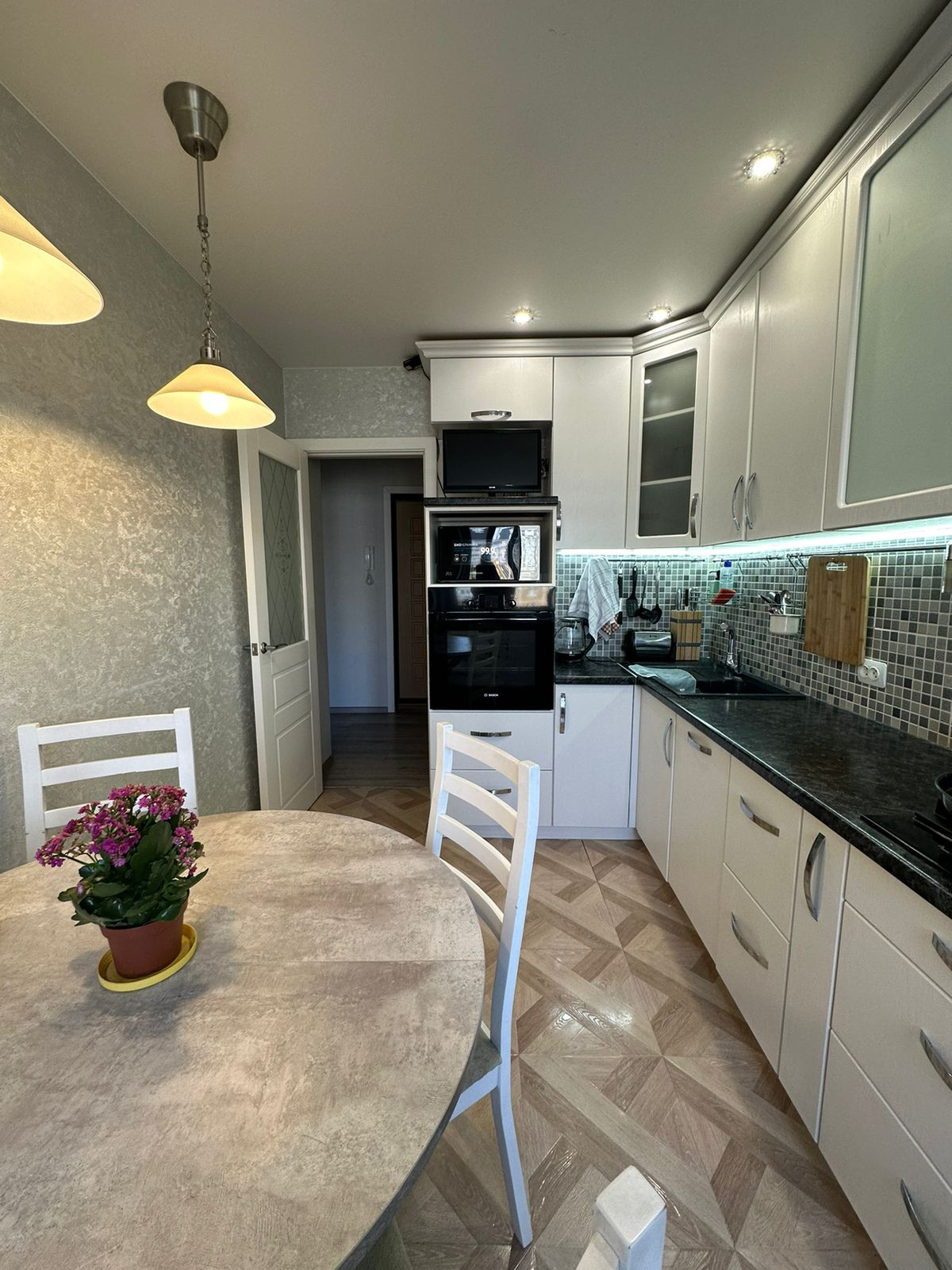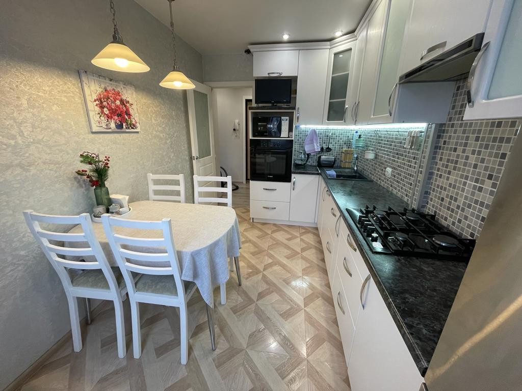 Продам прекрасно отремонтированную 3-х комнатную квартиру на Южном шоссе. Дом панельный 1989 года постройки. Что сделано: замена электрической разводки, смена стояков холодной, горячей воды, стояков отопления, установка новых би-металлических радиаторов, залили и выровняли полы, оштукатурили и выровняли стены под обои, утеплили лоджию, заменили все стеклопакеты, в том числе на балконе и лоджии, пол-плитка и ламинат, новые межкомнатные двери. В шаговой доступности школа по прописке №161 и детский садик №35 "Радуга". Рядом остановки общественного транспорта, магазины, ТЦ "Крым".