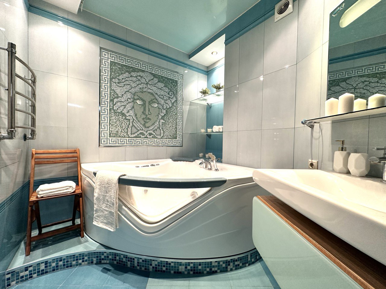 На кухне, в прихожей, ванной и на лоджии полы с подогревом, в ванной установлена джакузи, на всю квартиру  подключена система полной фильтрации глубокой степени очистки воды  (голубая мягкая водичка Вас будет радовать каждый день).