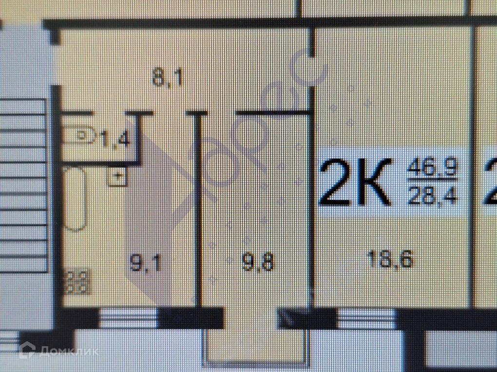 Общая площадь 46.9 м2