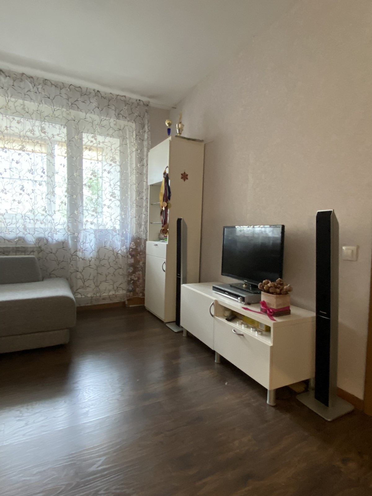- на полу ламинат