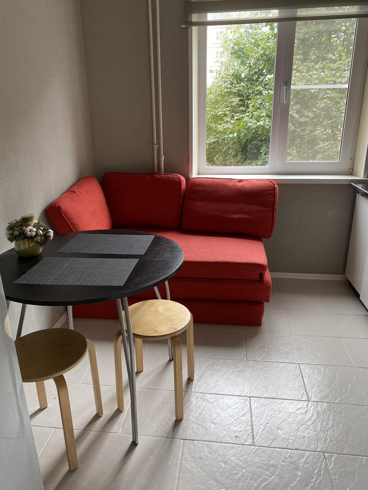 В квартире оставляем мебель: кухонный гарнитур, шкафы, кресла.