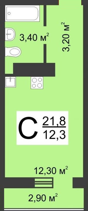 Общая площадь 22 м2