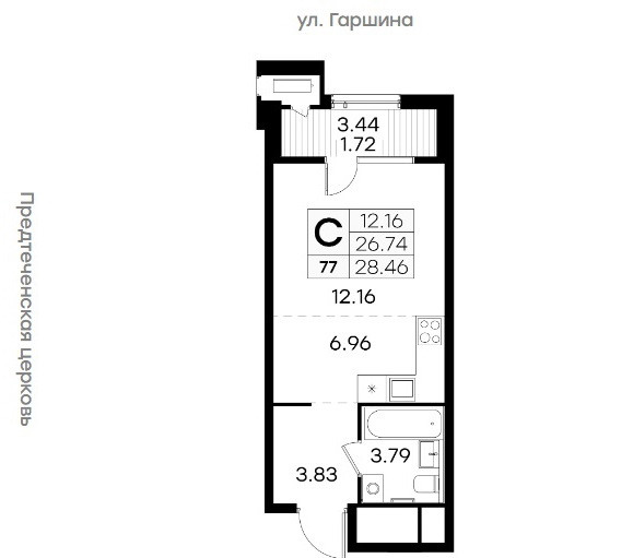 Общая площадь 28.4 м2