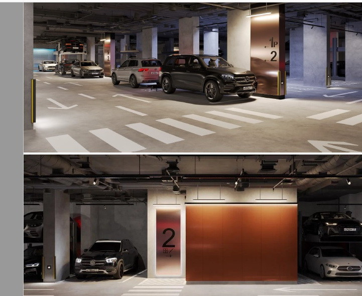 - Двухуровневый отапливаемый паркинг на 350 м