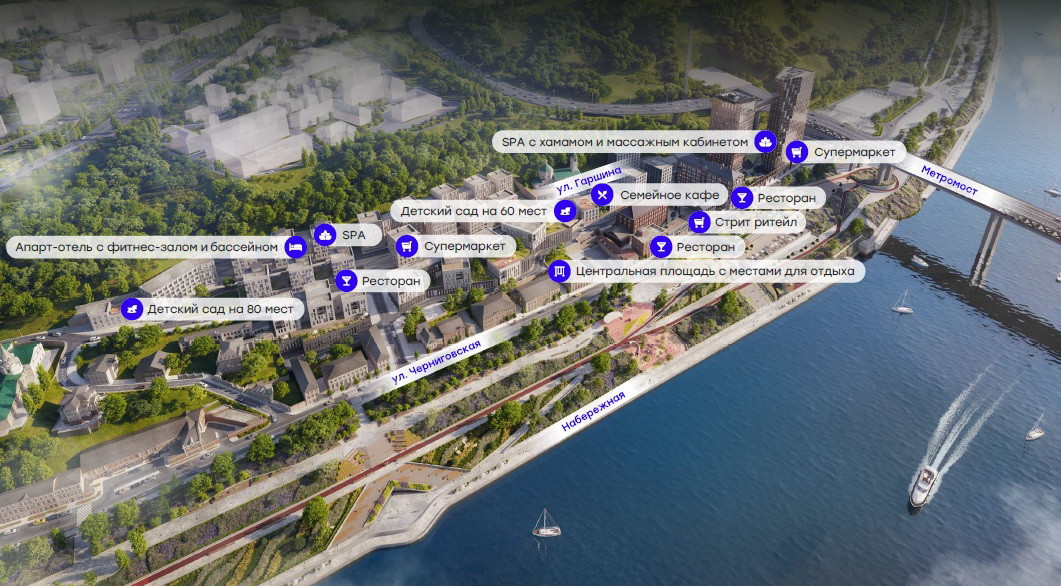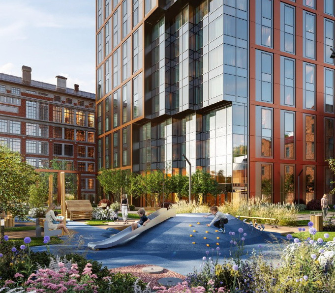 - Современные детские площадки, зоны спокойного отдыха, зона для занятия спортом, зеленые кабинеты на свежем воздухе