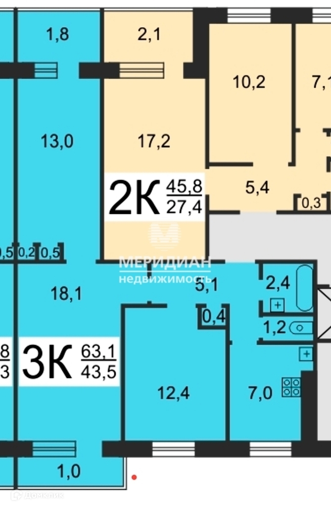 Общая площадь 63.1 м2