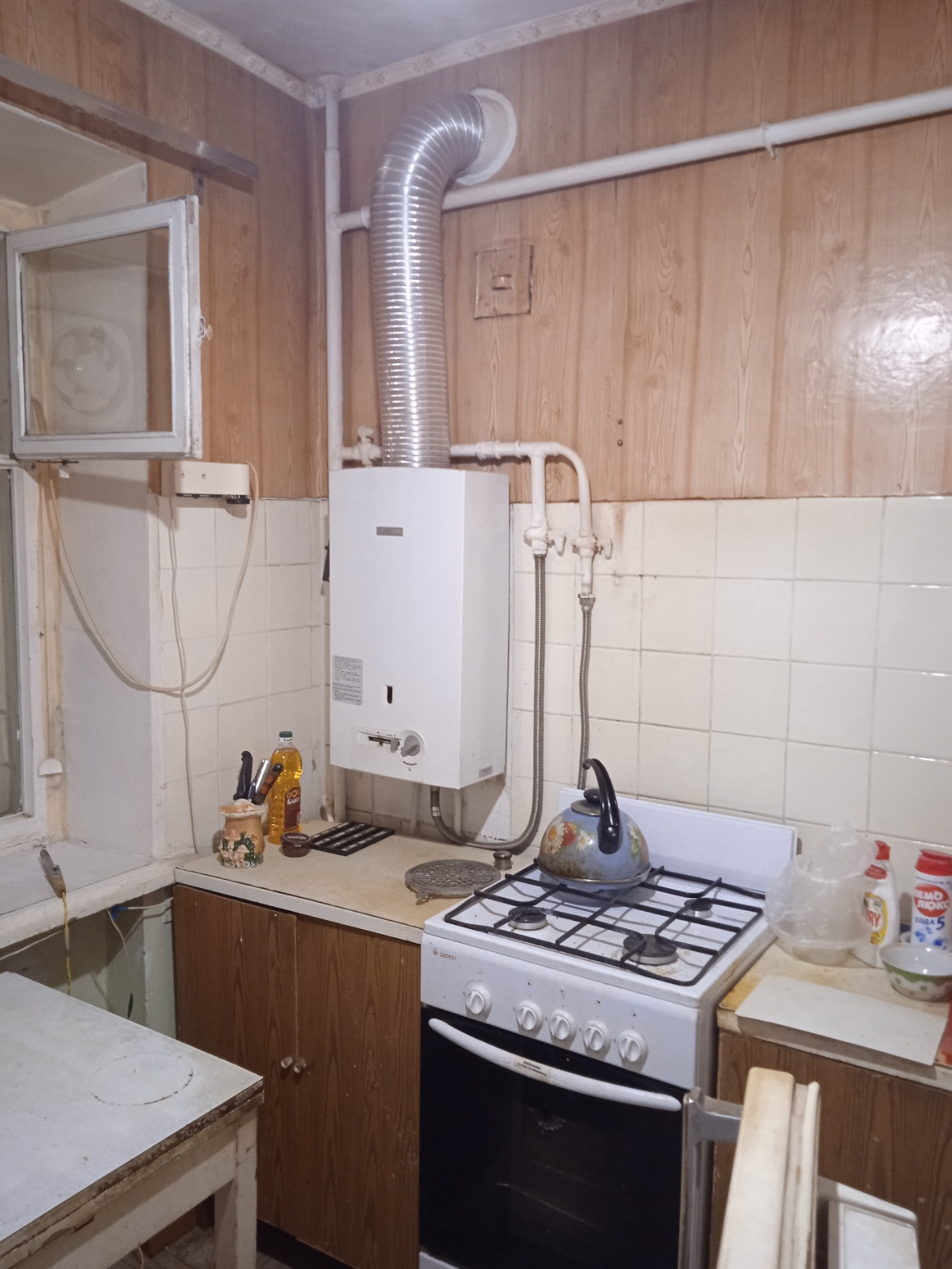Новые газовая плита, колонка и входная дверь.