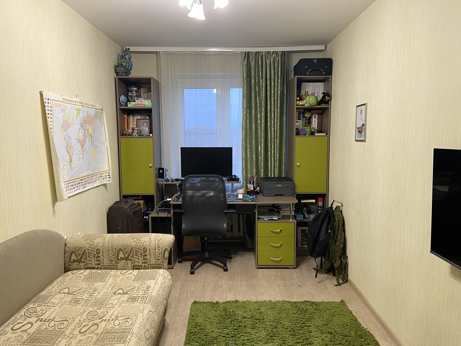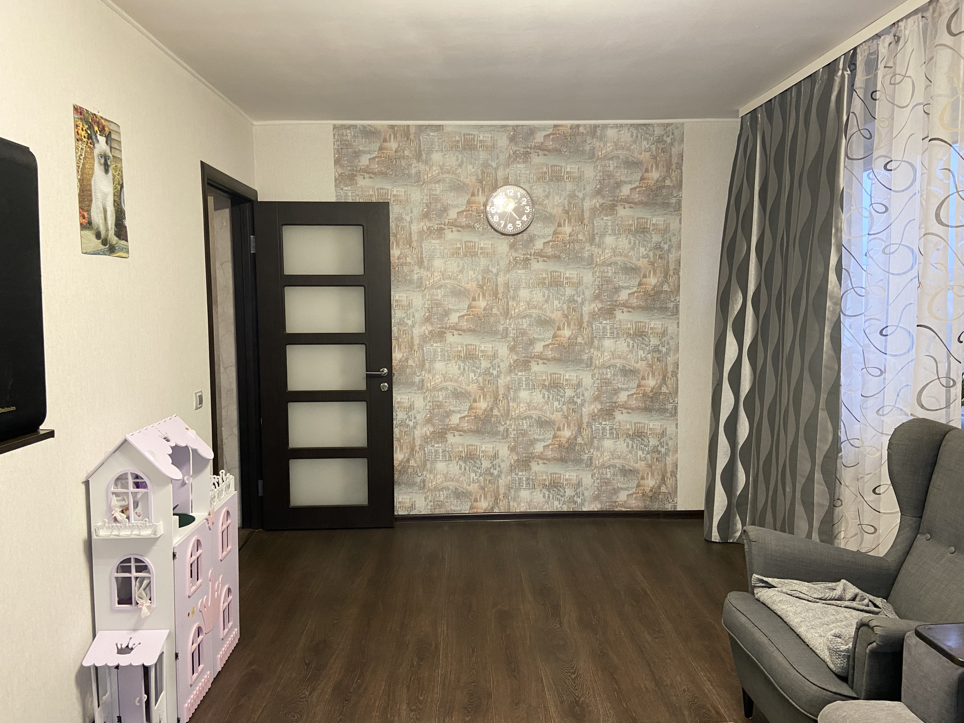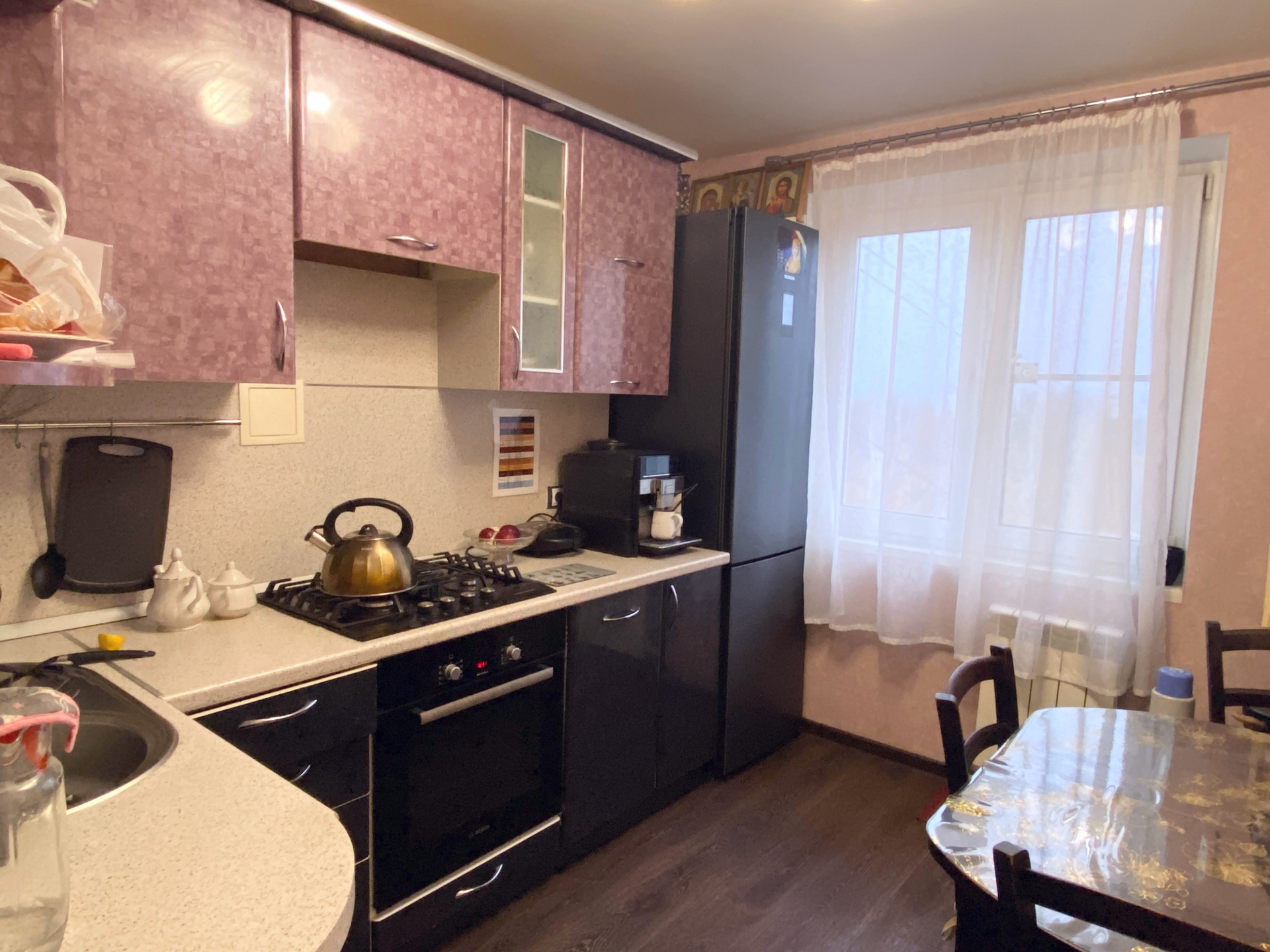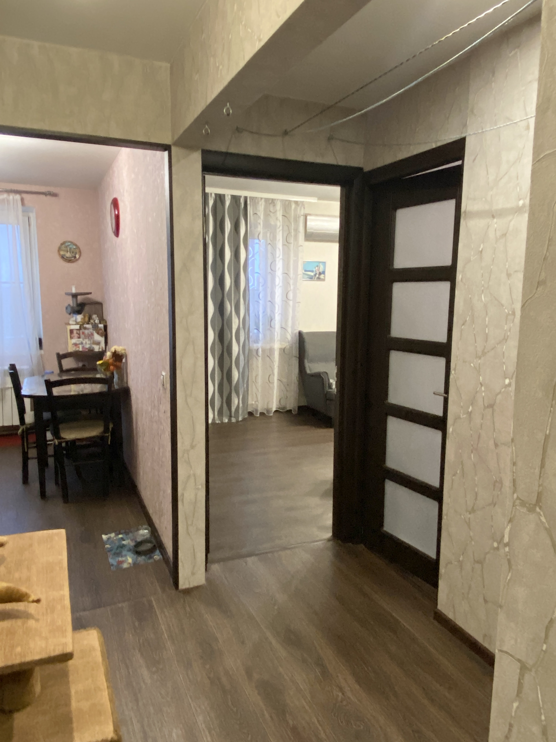 Квартира теплая, светлая, уютная, с современным ремонтом. Окна пластиковые, стены и потолки выровнены, заменены вся проводка, трубы, сантехника, современные двери, хорошо остеклен балкон. Все комнаты изолированные, хороший вид из окна.