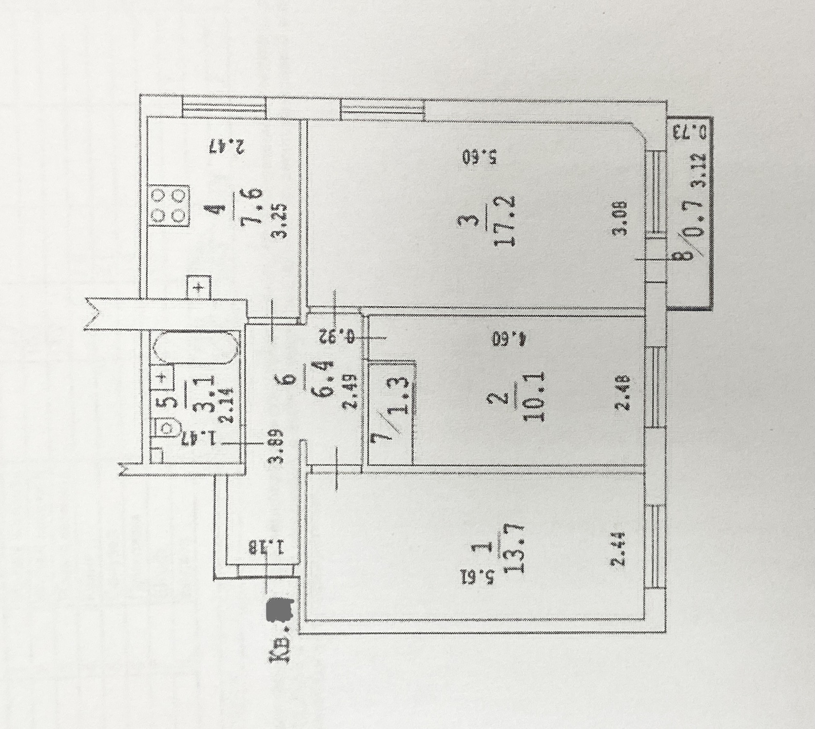 Площадь кухни 7.6 м2