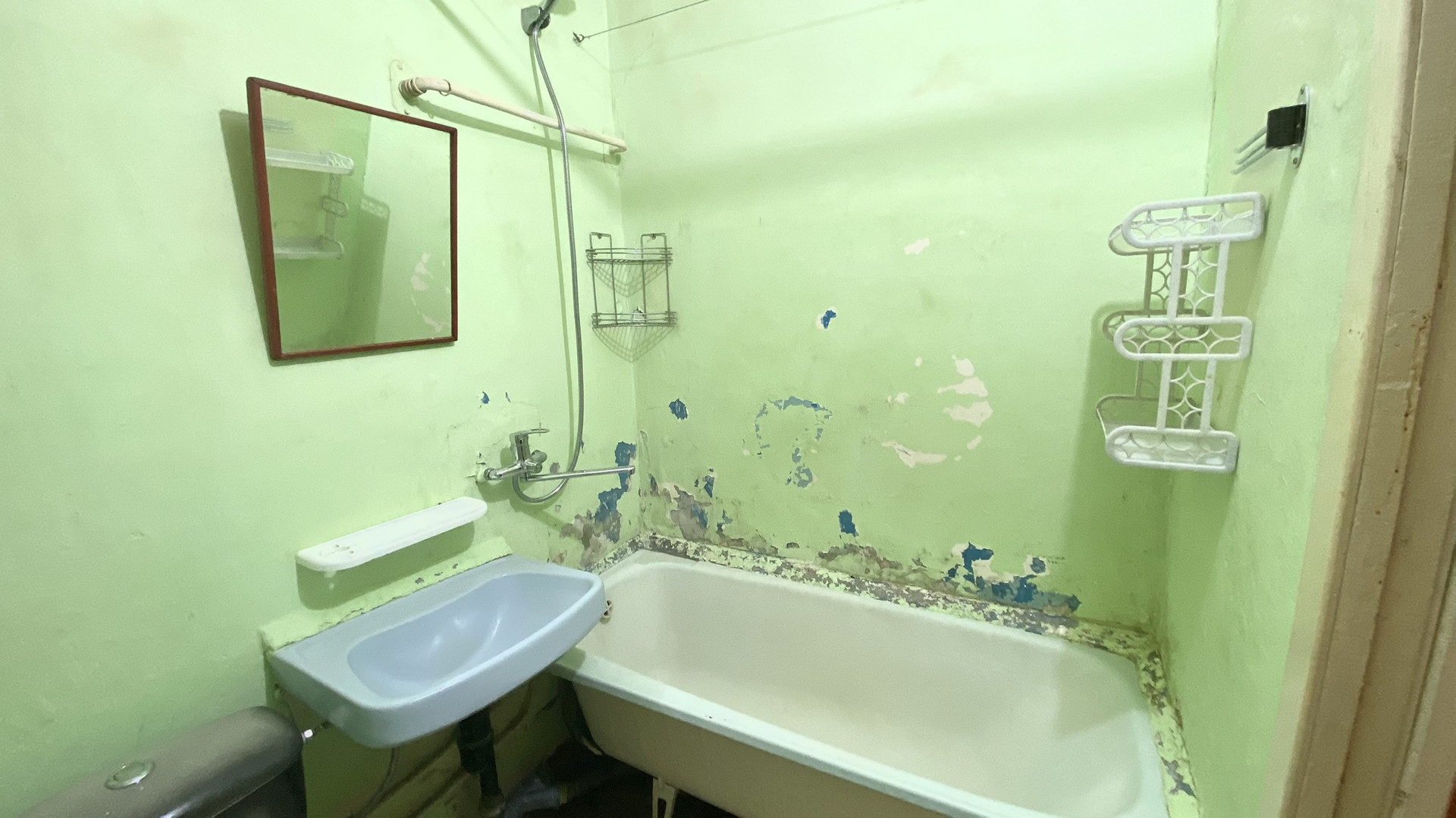 Совместный санузел, ванная и унитаз полностью в рабочем состоянии.