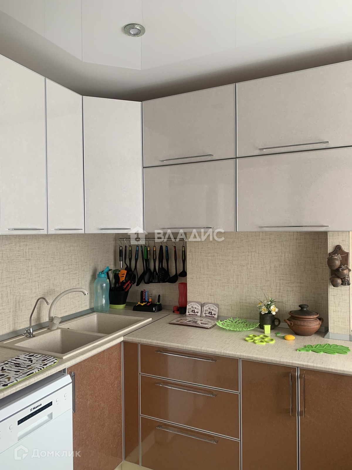 На кухне новый кухонный гарнитур со всей необходимой техникой: газовая плита, духовой шкаф и т.д. Двойная раковина и кран из камня. Дополнительно установлен кран для фильтра питьевой воды Аквафор. Led подсветка рабочей зоны включается от прикосновения руки.