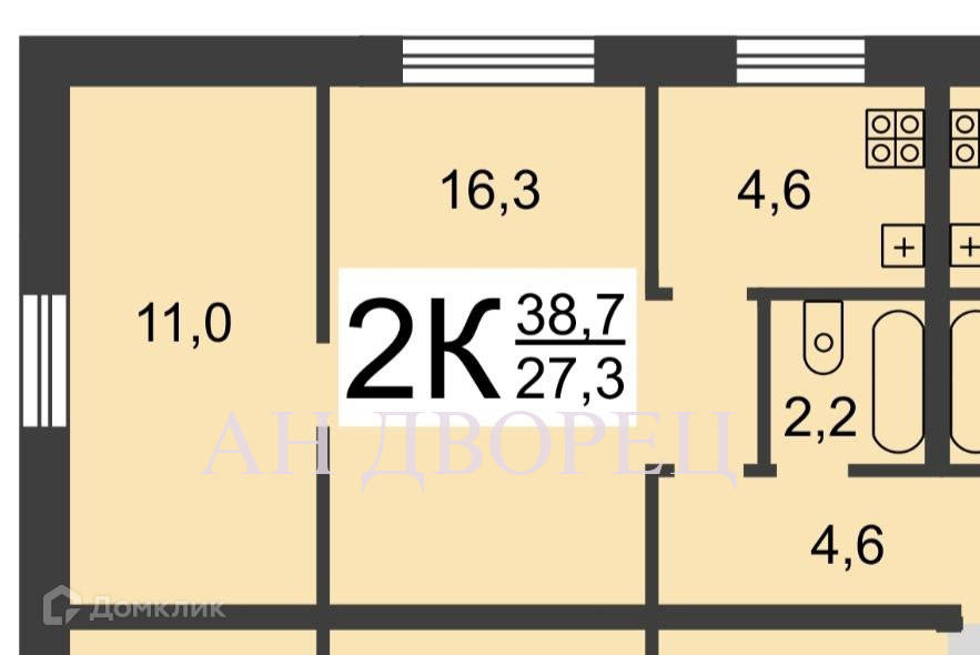 Жилая площадь 27 м2
