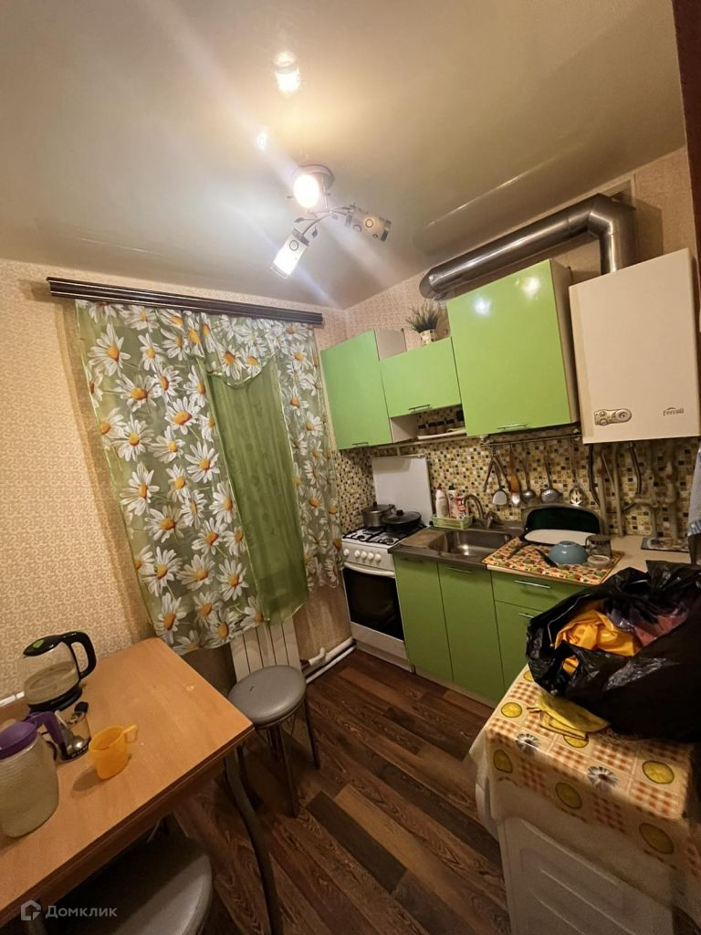 В квартире остается кухонный гарнитур, угловой шкаф.
